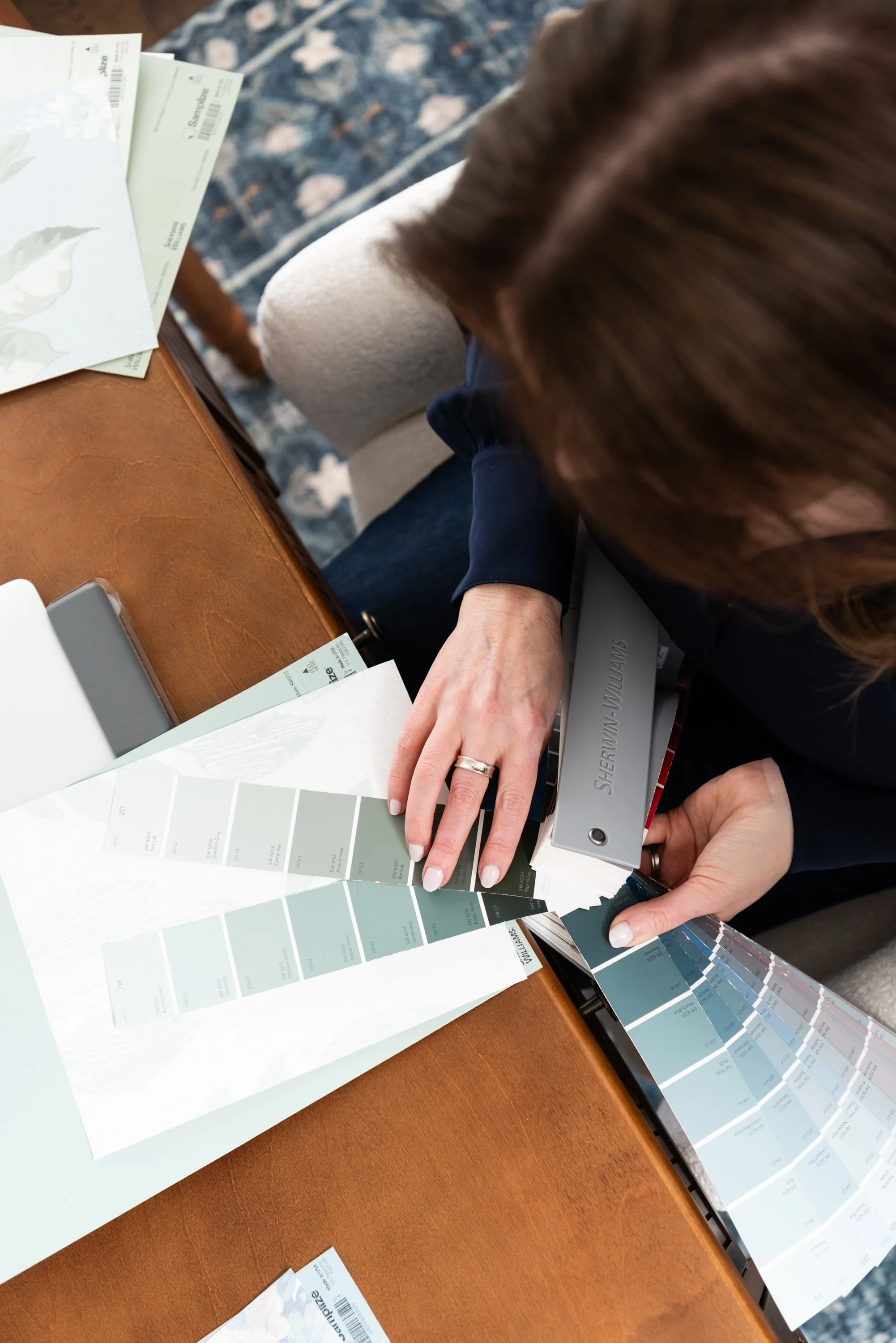 You’ll receive thoughtfully selected paint colors, along with physical samples to test on your walls and surfaces, so you can see how everything reads throughout the day.